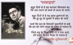 साहिर लुधियानवी की शायरी महज़ लफ़्ज़ नहीं, बल्कि समाज की आवाज़ है। उनकी ग़ज़लों में मोहब्बत का दर्द भी है और इंसाफ़ की पुकार भी। यही वजह है कि वे आज भी लाखों दिलों में ज़िंदा हैं।