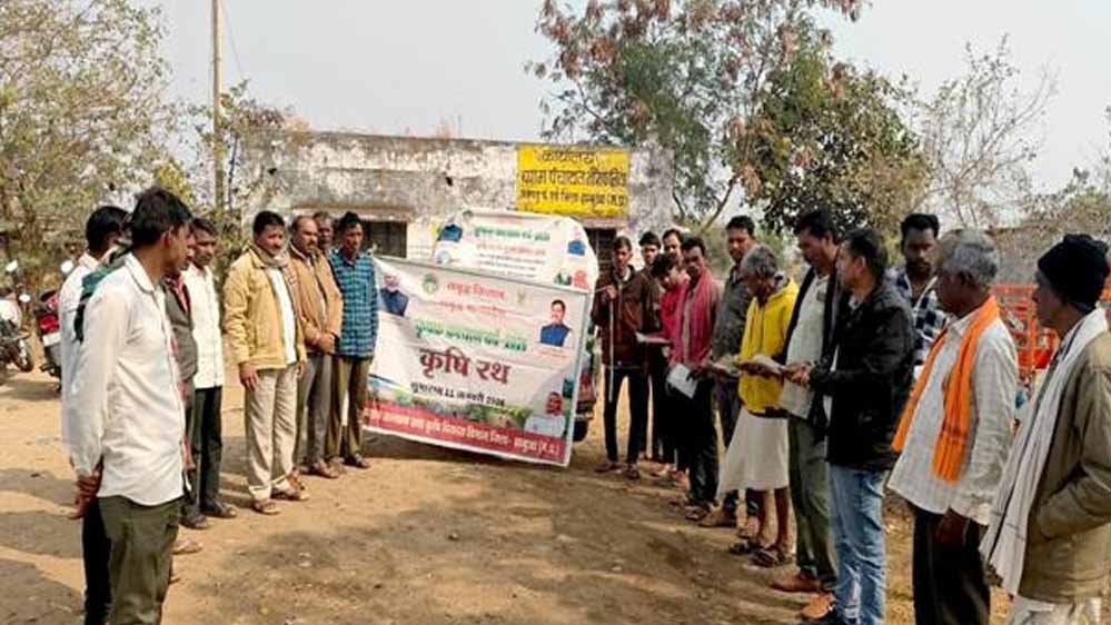 कृषि रथ से किसानों को फसलों में संतुलित उर्वरक एवं नवीन तकनीकों की दी गई जानकारी
