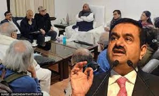 अडानी समूह पर सरकार दे जवाब, विपक्ष के सांसदों ने संसद भवन में बनाई मानव श्रंखला