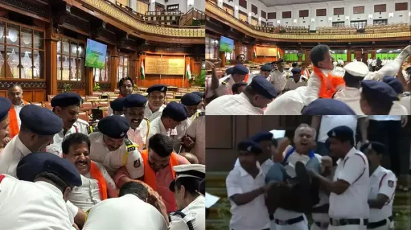 BJP MLA Suspended: कर्नाटक विधानसभा में बवाल; 18 विधायक छह महीने के लिए निलंबित; मार्शलों ने टांगकर बाहर किया