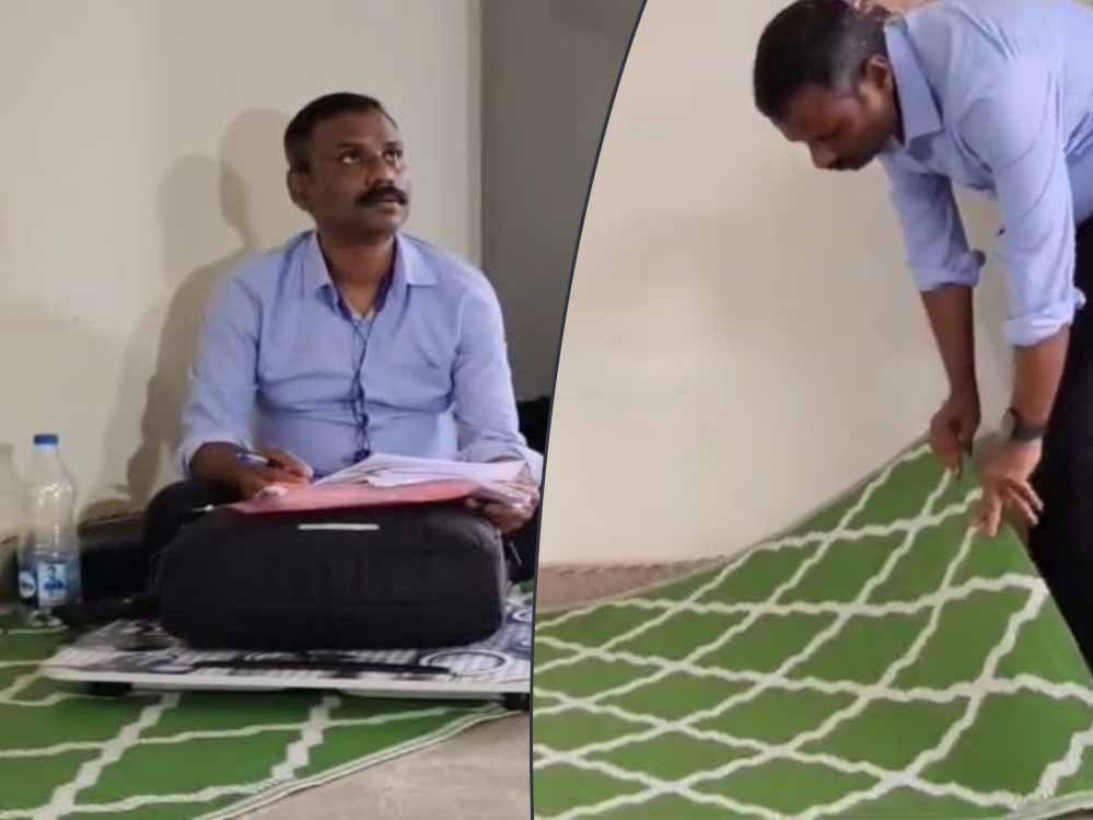 भवन विकास निगम ऑफिस की हकीकत: एजीएम सतीश डोंगरे जमीन पर चटाई बिछाकर कर रहे काम, कुर्सी-टेबल की परमिशन अटकी
