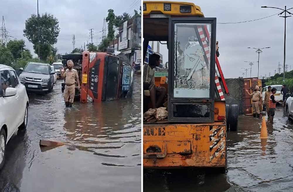 लगातार हो रही बारिश के बीच भयानक सड़क हादसा, लगा लंबा जाम
