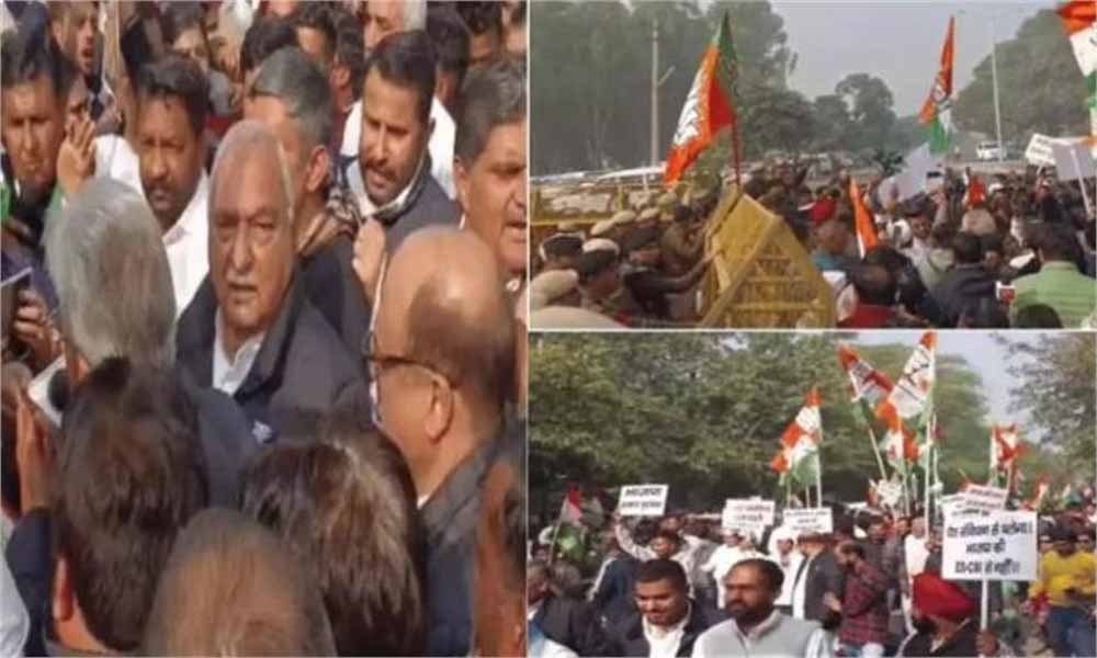 हरियाणा में सियासी संग्राम: पंचकूला में BJP दफ्तर का कांग्रेस ने किया घेराव, पुलिस ने बैरिकेड लगाकर रोका